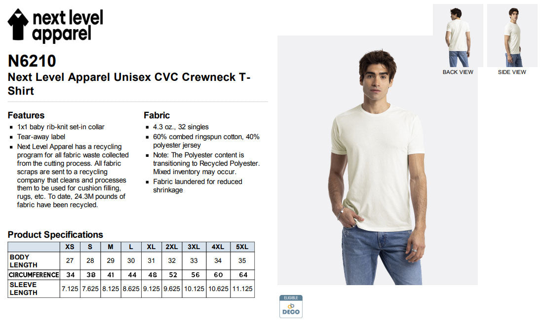 Our best-selling unisex style, Next Level 6210 crew neck t-shirt features short sleeves and a modern, smaller fit for a modern, stylish look.